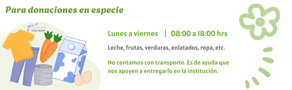 Donar ☆ Donar ☆ Contamos con diferentes métodos Con tarjeta de débito o crédito Donación de única vez. Elige la cantidad que quieras donar por una sola ocasión. Donación mensual. Dona recurrentemente, desde $100 mes con mes. Donación anual. Elige la cantidad que quieras donar una vez al año. Donar Con depósito o transferencia bancaria ☆ Donación única Banco Santander Florecer Casa Hogar A.C Cuenta: 92000874331 CLABE: 014180920008743313 Envía tu comprobante a florecer07@gmail.com *Si requieres tu comprobante de donativo deducible de impuestos, mandar por correo tus datos (Nombre completo, RFC, correo electrónico)